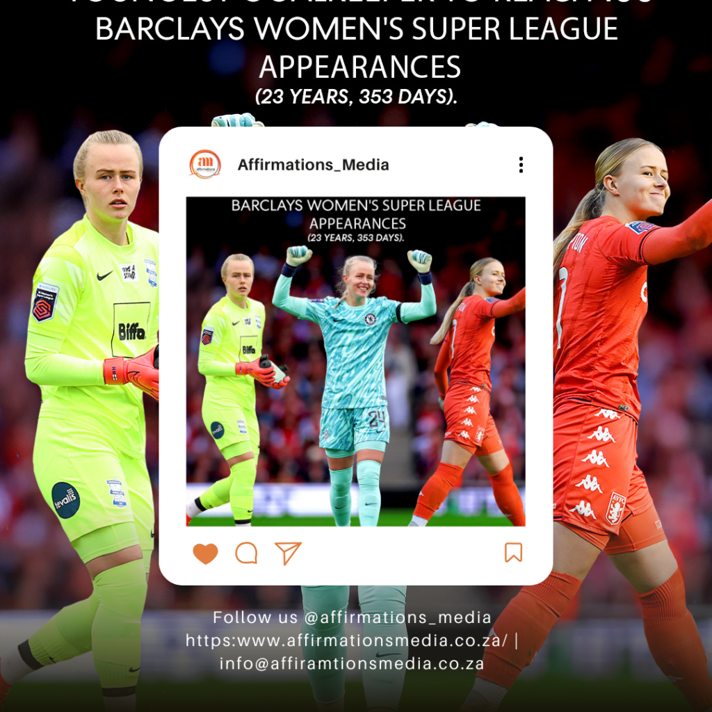 Hannah Hampton, the goalkeeper for Chelsea and the England national team, has reached a significant milestone by becoming the youngest player in history to complete 100 matches in the Barclays Women’s Soccer League at the age of 23.